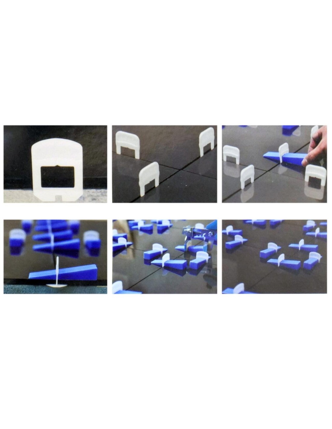 Set de nivelare si aliniere a placilor ceramice, cleste, 100 distantiere x 1 mm, 100 pene
