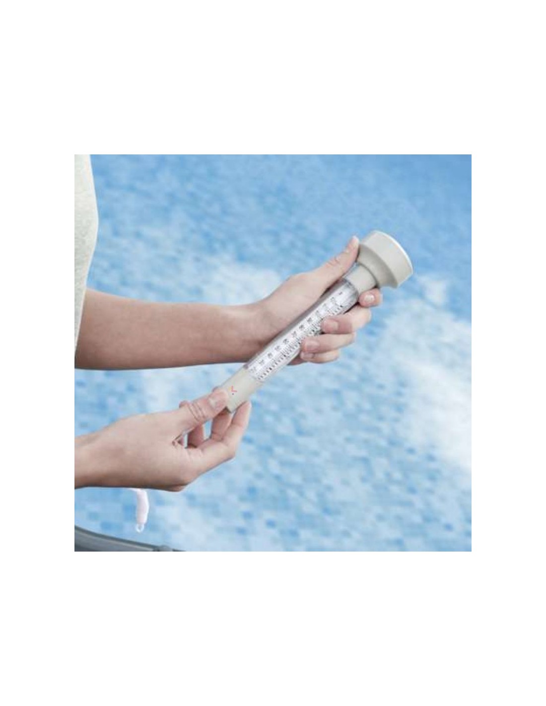 Termometru plutitor cu snur pentru masurarea temperaturii apei din piscine, 19 x 5 cm, Alb