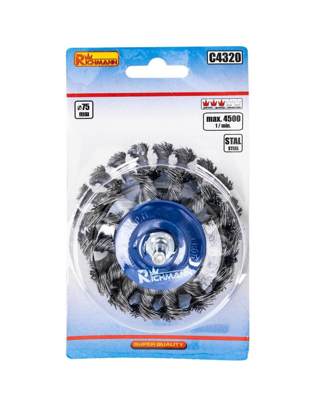 Perie sarma otel, circulara, cu toroane, cu tija, 75 mm, Richmann