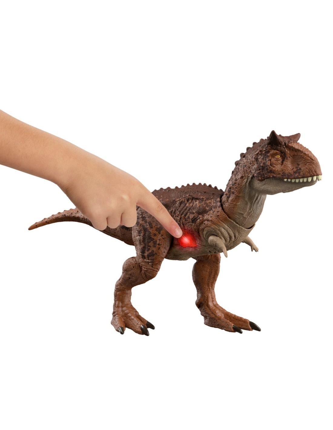 Aceast dinozaur Epic Attack Battle Chompin' Carnotaurus aduce lumea Jurassic World acasa. Doua zone interactive de deteriorare! Pe cele doua zone de &bdquorana&rdquo, apasati de mai multe ori pentru a vedea 3 NIVELURI DE INTENSIFICARE A EFECTELOR DE DAUNE!Distractie sporita! Copiii pot explora modurile termice si cu raze X, pot urmari si captura dinozauri in diferite habitate, precum si pot salva si elibera dinozauri in habitatele lor corecte in jocuri de aventura interesante.Aduceti dinozaurul &bdquoLA VIAta&rdquo folosind Realitatea Augmentata! Scaneaza codul de urmarire ascuns in aplicatia gratuita Jurassic World Facts cu un dispozitiv inteligent compatibil (Android sau iOS, nu este inclus) pentru a debloca experiente si jocuri AR! Culorile si decoratiunile pot varia.