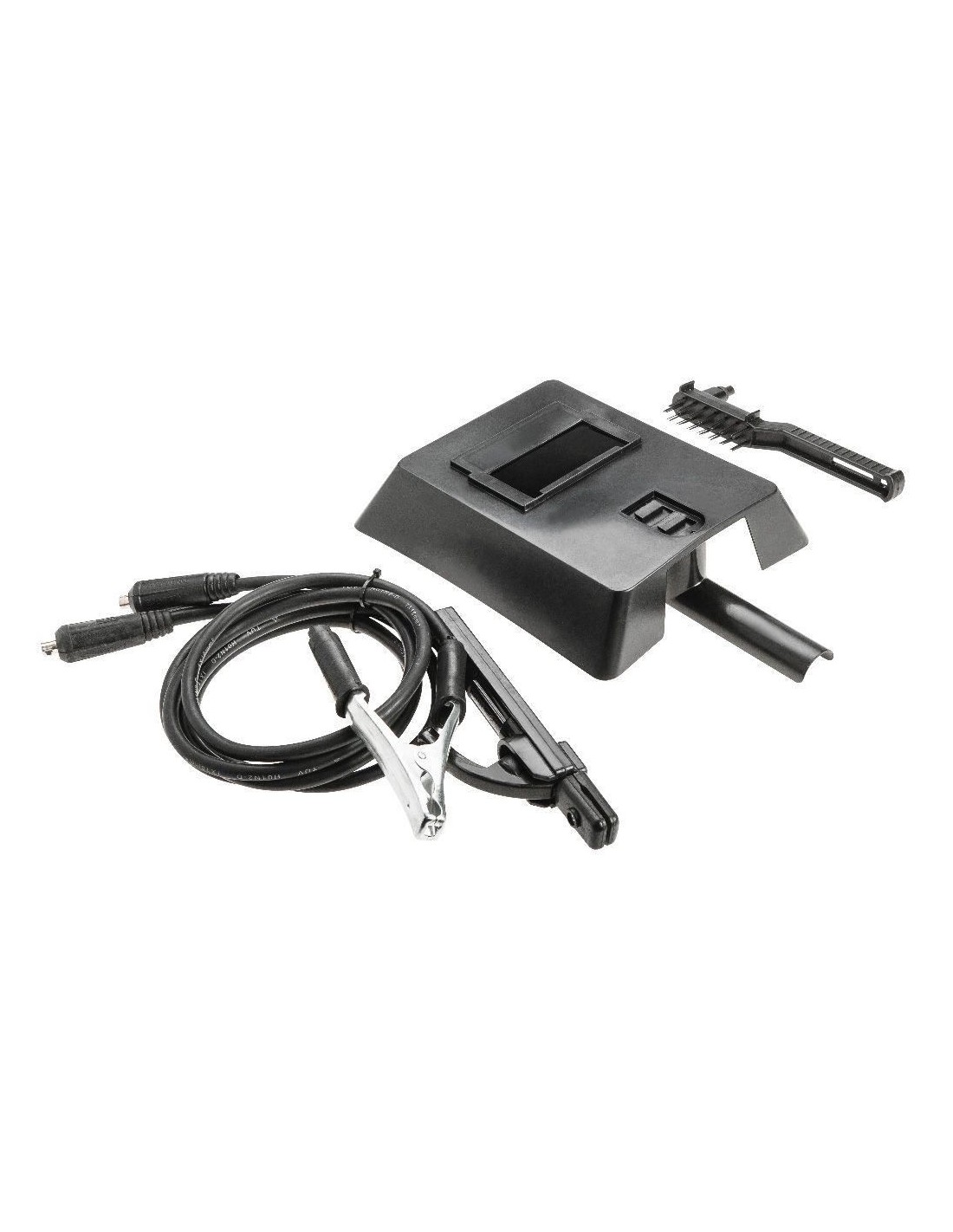 Este complet echipat cu cabluri, masca de sudura si ciocan.