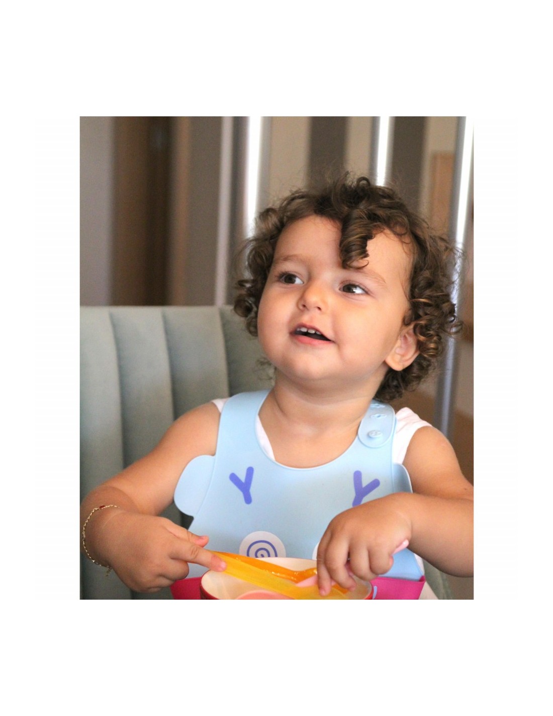 * Bavetica din silicon?100%?moale,?usor?si?confortabil?cu buzunar