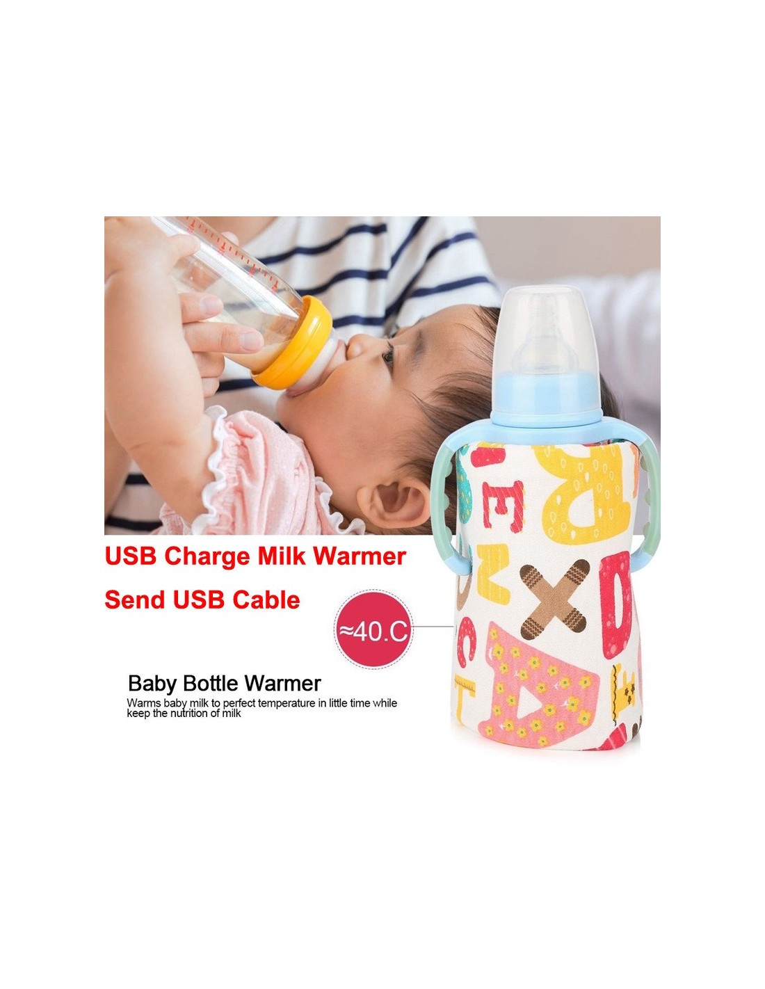 Incalzitor portabil tip husa, cu cablu USB - pentru mentinerea constanta a temperaturii biberonului, multifunctional - pentru lapte, ceai si alte lichide in diverse recipiente. Culoare: alb cu inimioare multicolore Dimensiune: 28*13cm Lungime cablu: aprox. 62cm Greutate: 60g Alimentare prin cablu USB