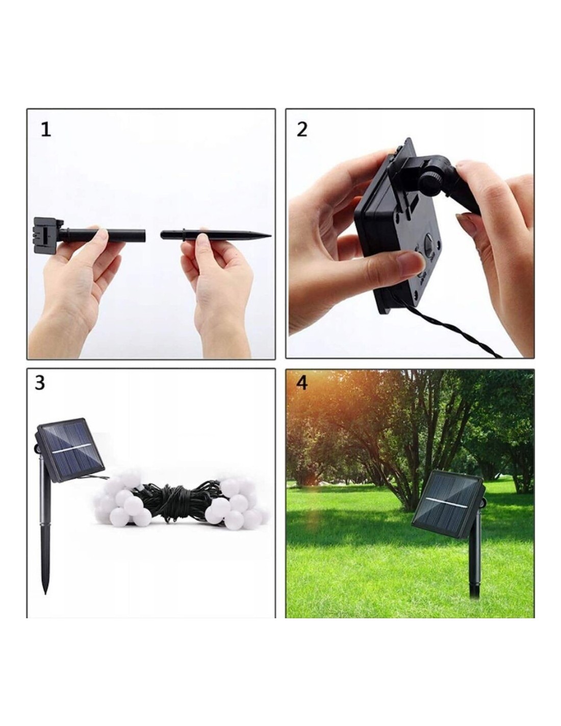 - INSTALARE U?oara ?/b>?Ghirlanda noastra solara este extrem de u?or de utilizat.?Doar desface?i-l ? locul selectat, introduce?i panoul solar ?corporat ? pam?t, ? locul selectat, gra?ie cuierului inclus, iar apoi va absorbi energie ? timpul zilei pentru a oferi iluminare pe tot parcursul nop?ii.?Fara cabluri complicate sau baterii scumpe - este solu?ia perfecta pentru persoanele care cauta simplitate ?i economie.