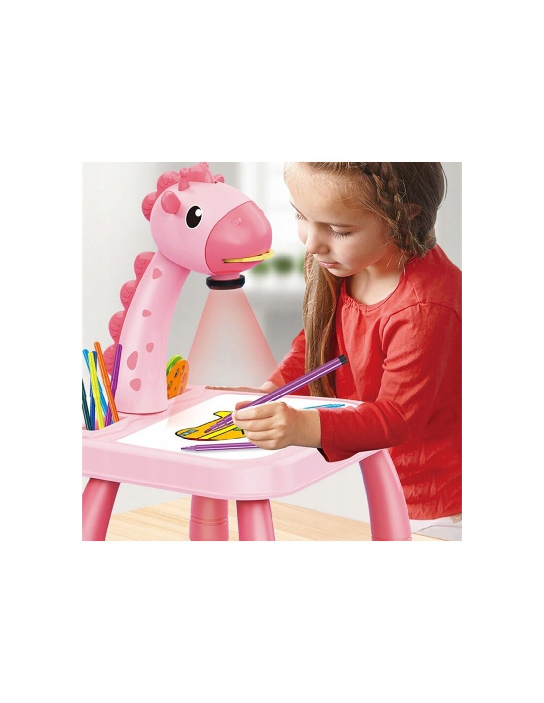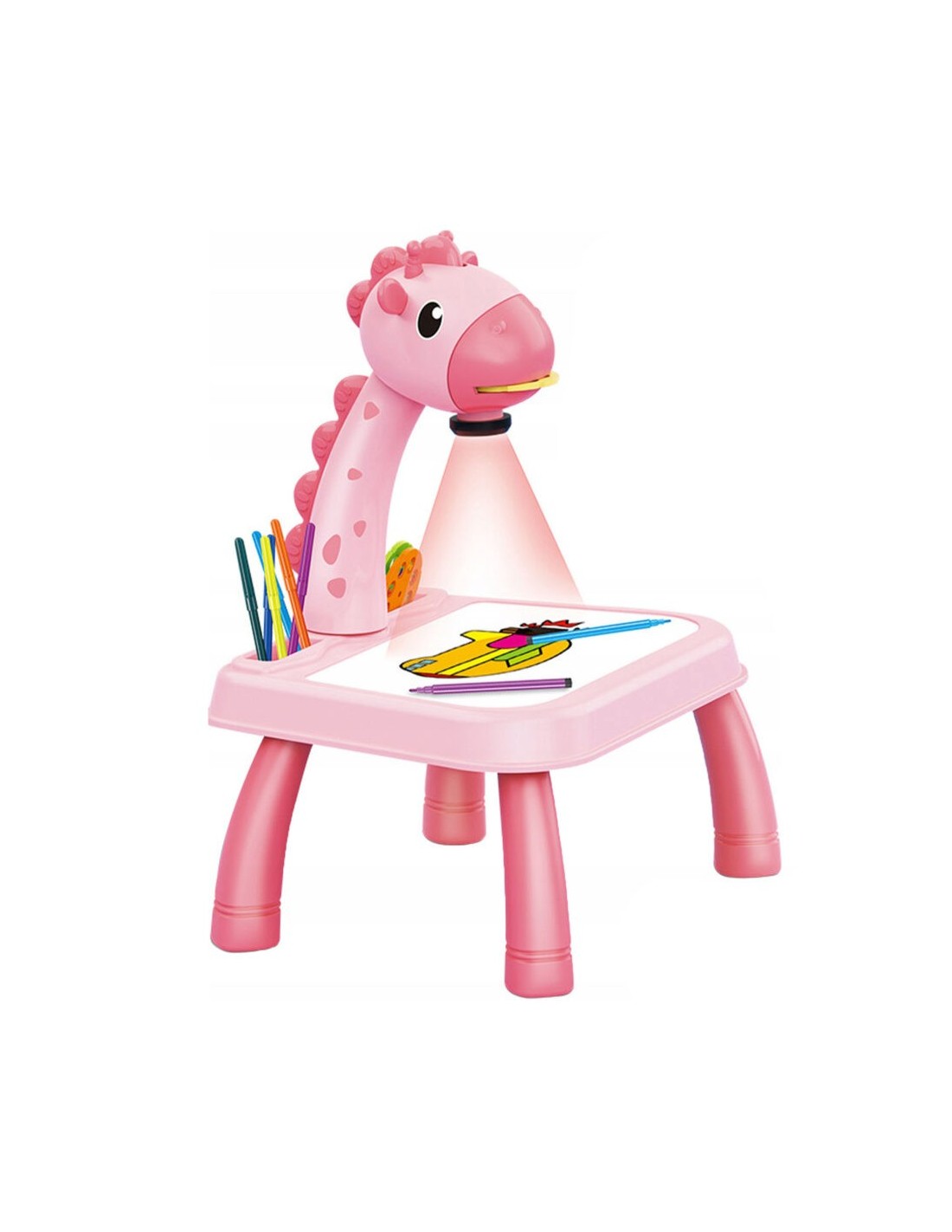 Masa Muzicala de Desen pentru copii cu Proiector, model Girafa, culoare Roz, 24 imagini, AVX-WT-222-2-PINK-GIRAFFE