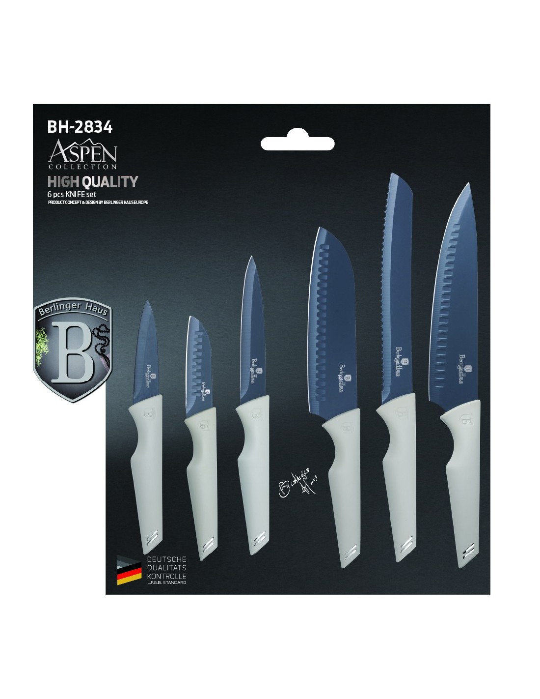 Setul include 6 tipuri de cutite diferite, toate marca Berlinger Haus, o marca foarte calitativa si apreciata in randul bucatarilor profesionisti.