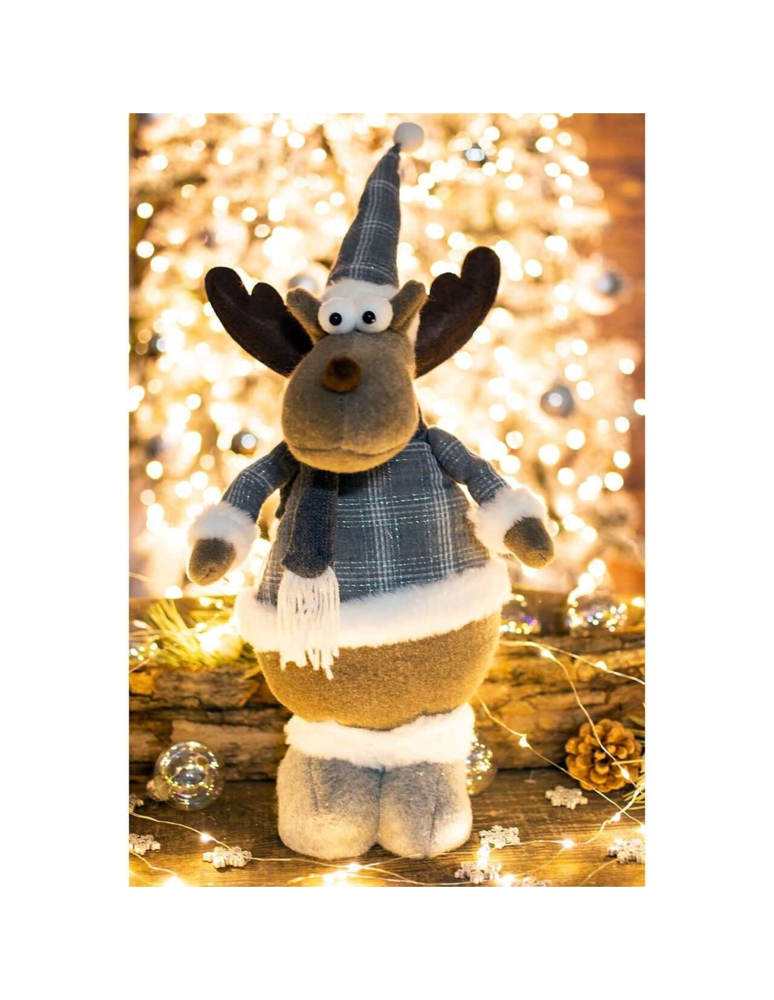 Decoratiune Craciun, ren in carouri, maro si gri, blanita alba, 20x50 cm, Jumi
