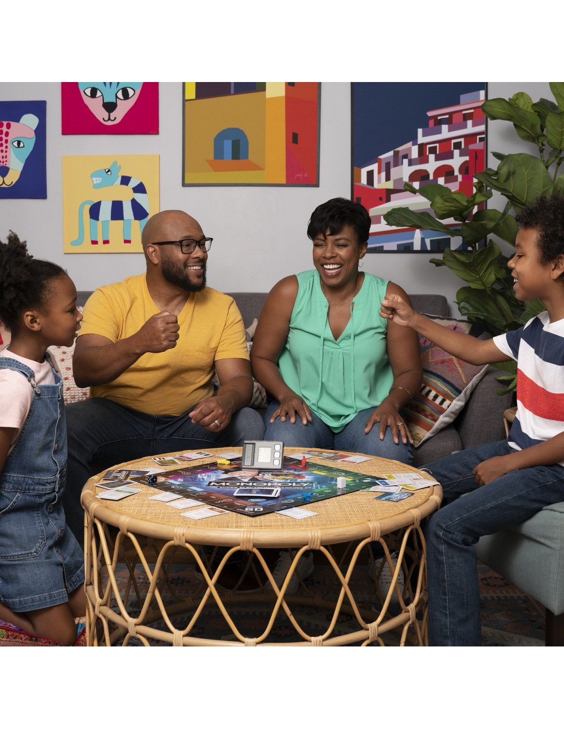 Jocul Monopoly Ultimate Rewards, numit si Monopoly Super Electronic Banking-Castiga Tot, este dotat cu toate intr-o unitate bancara electronica si imbunatateste emotia cu recompense unice! Fiecare jucator are un card bancar care le va castiga recompense diferite pentru joc ruleaza un anumit numar, aterizeaza pe un anumit spatiu sau cumpara o anumita proprietate. Jucatorii pot alege, de asemenea, sa zboare catre orice proprietate de pe tabla si sa forteze un alt jucator sa tranzactioneze una dintre proprietatile preferate ale acestora. Nu exista bani de hartie in acest joc - cartile si unitatea bancara urmaresc banii fiecarui jucator. Este un joc interesant, deoarece jucatorii cumpara proprietati, colecteaza chirie - si sunt recompensati pentru asta! Jucatorul cu cei mai multi bani la finalul jocului castiga. Jocul include tabla de joc unitate bancara 4 jetoane din plastic 4 carti bancare 16 carti cu titlul de fapta 20 carti de sansa 4 carti de referinta 1 zar ghidul de joc.