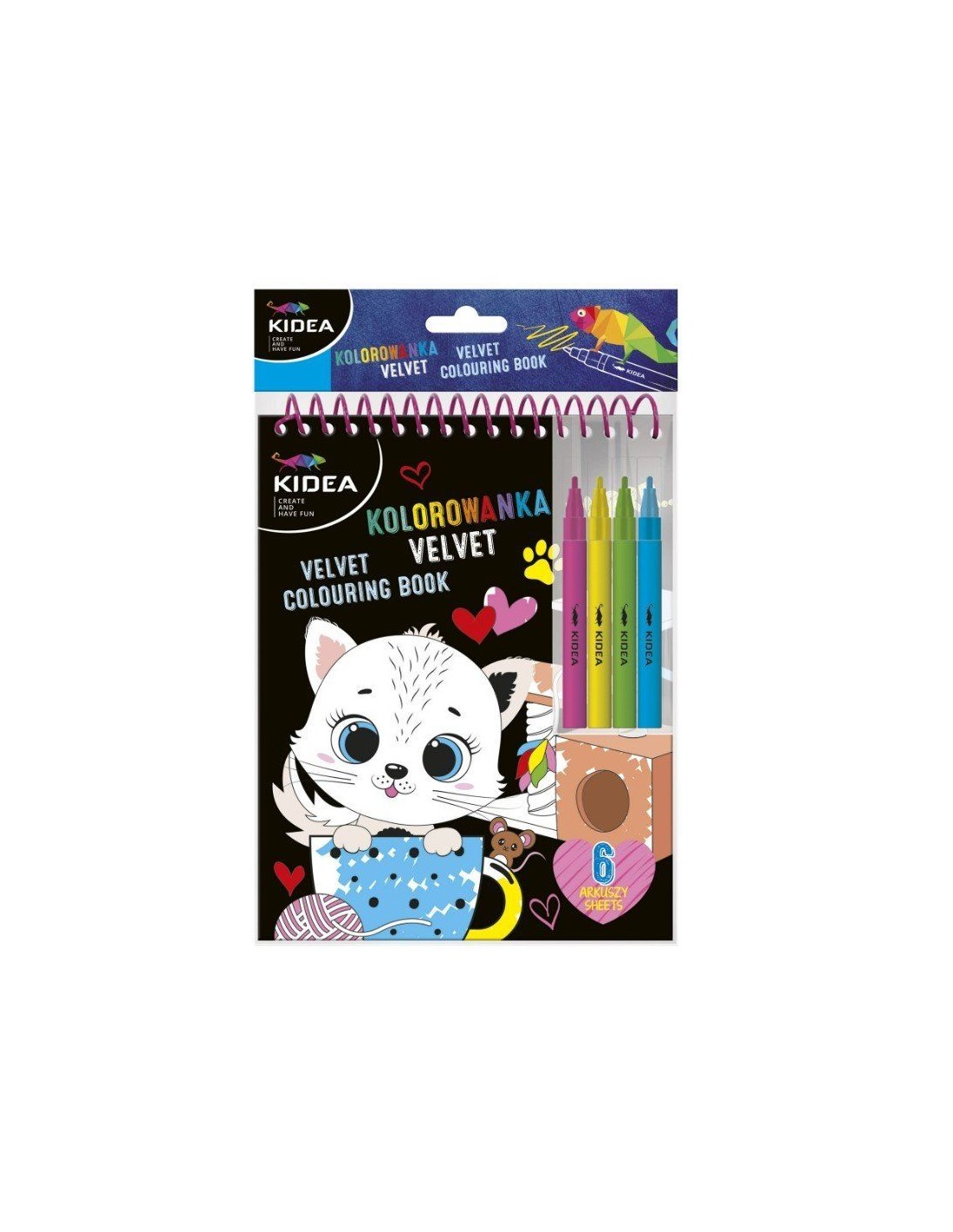 Set carte de colorat spiralata pisicuta, Kidea, Velvet catifea, cu 4 markere