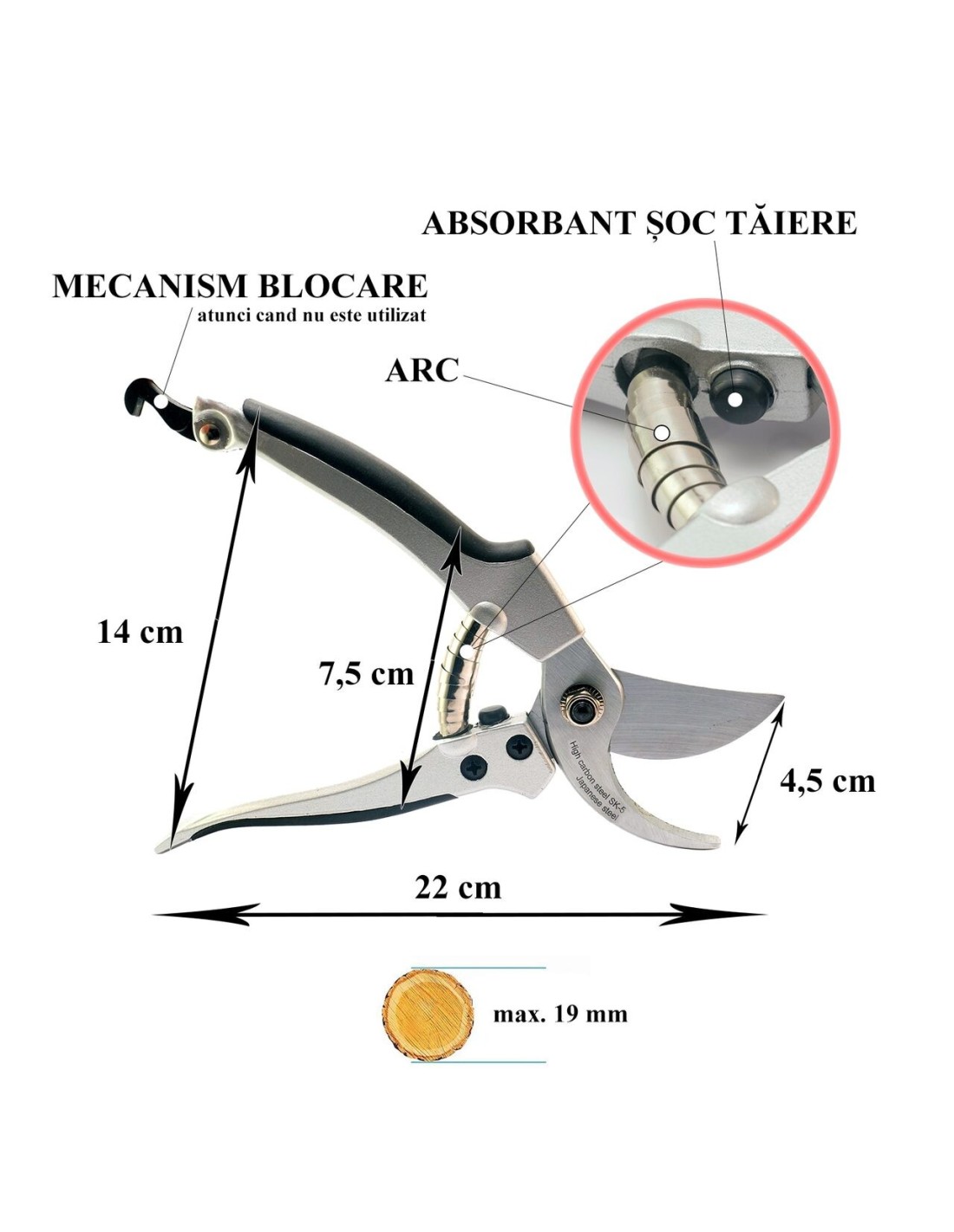 - Poate taia ramuri cu o grosime de pana la 19 mm.