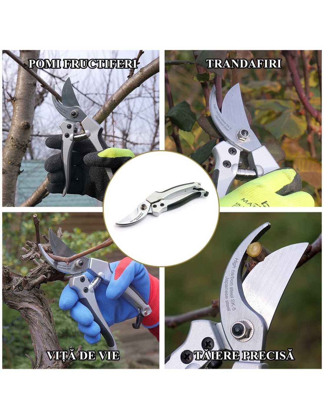 Foarfeca cu lama dreapta - este folosita pentru a taia ramuri mai subtiri si mai moi, cum ar fi cele de la arbusti sau flori. Lama dreapta asigura o taiere precisa si curata.