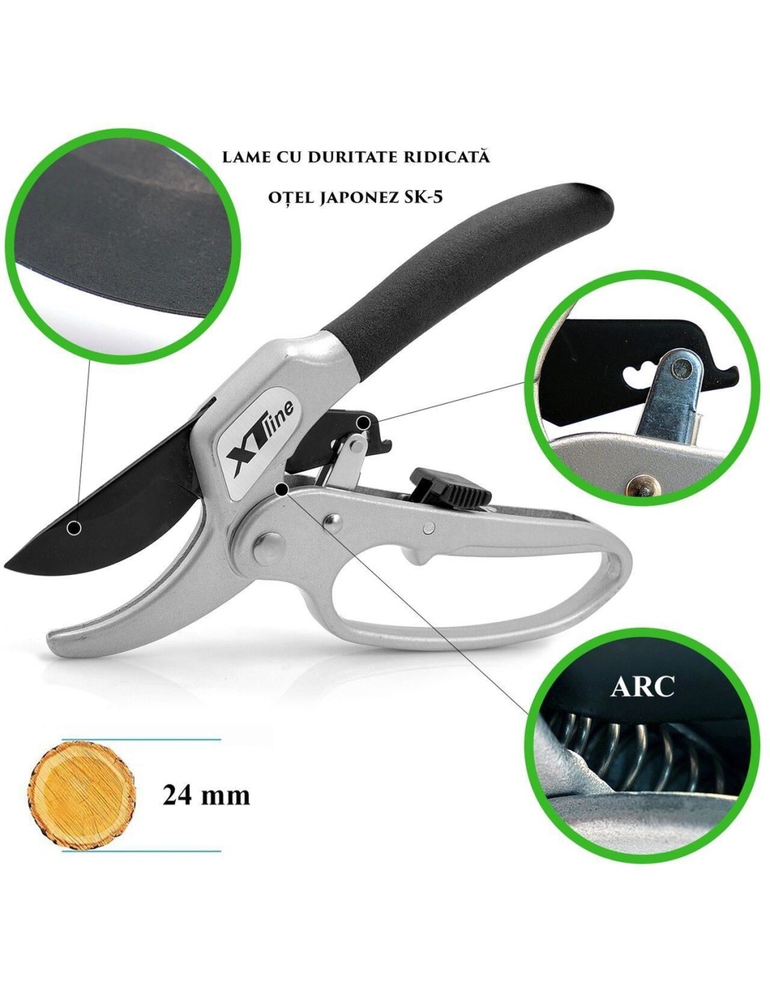 Foarfeca gradina, tip ghilotina, cu clichet, pentru vita vie, pomi, trandafiri, otel japonez sk-5, 20?cm, XTline