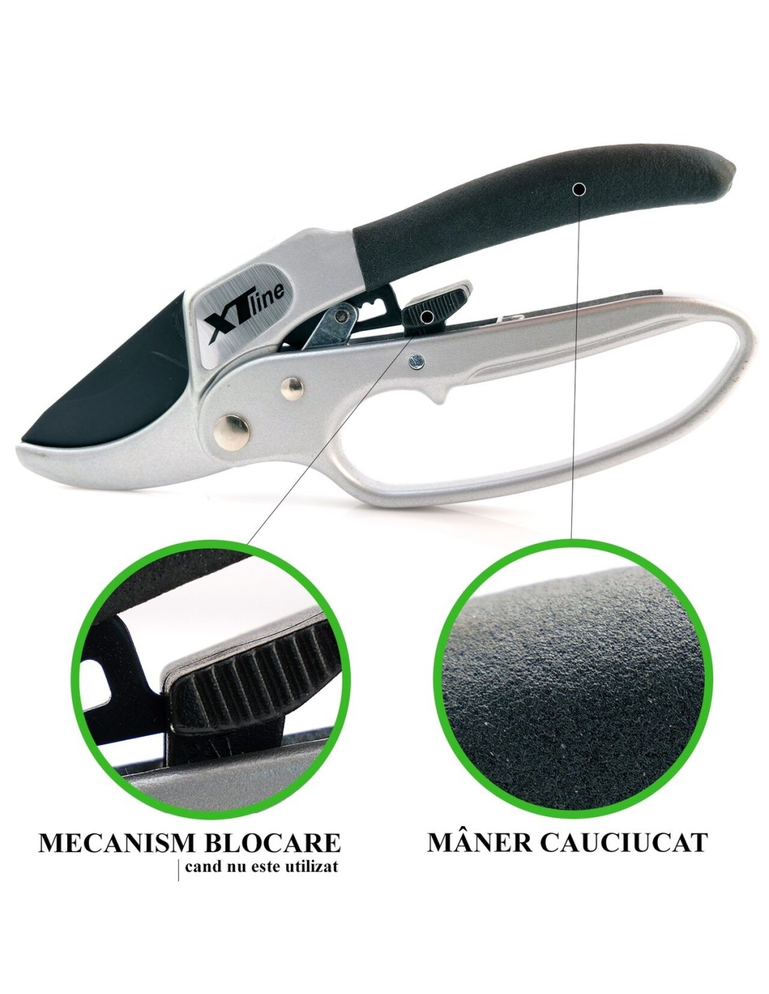 Foarfeca gradina, tip ghilotina, cu clichet, pentru vita vie, pomi, trandafiri, otel japonez sk-5, 20 cm, XTline