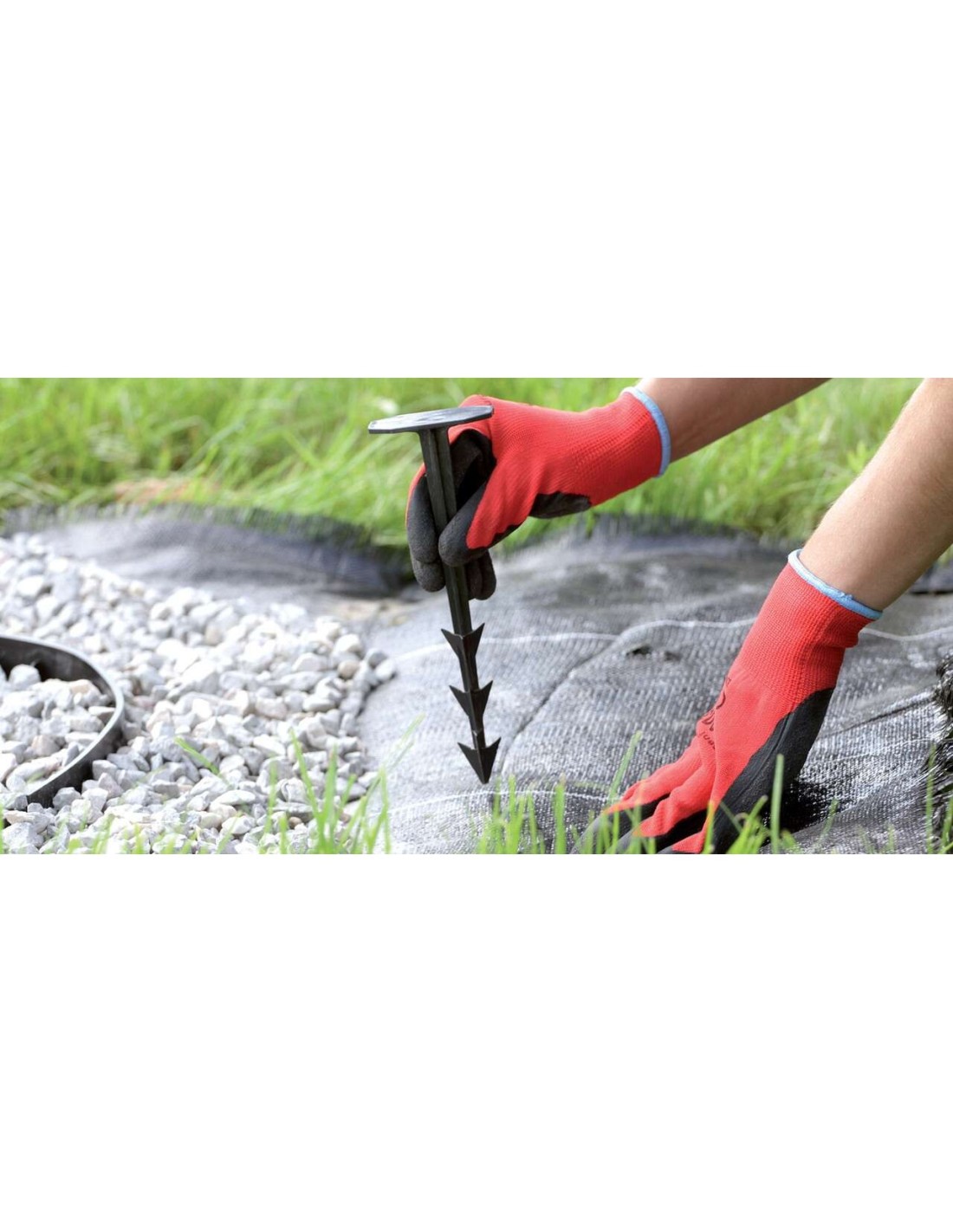 Se pot fixa foliile de sub piatra decorativa sau scoarta precum si delimitatoarele si?separatoarele de gradina si spatii verzi.