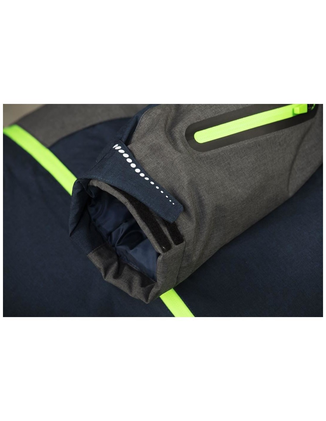 Este echipata cu o gluga reglabila confortabila si cu maneci reglabile?cu inchidere tip?Velcro.?