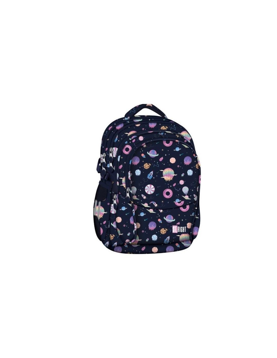 Ghiozdanul are un design foarte frumos cu spatiul si planetele, iar interiorul lui este captusit.