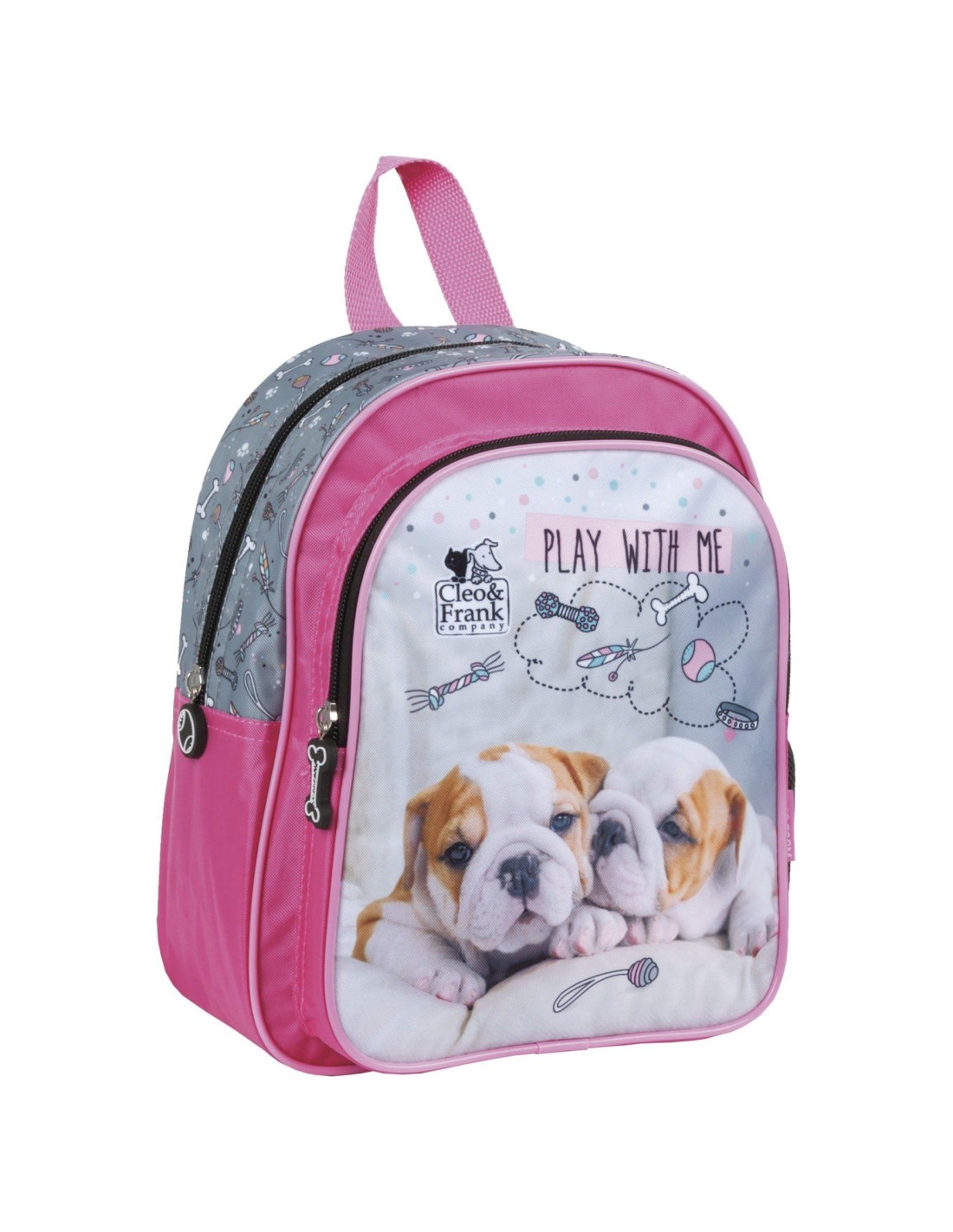 Ghiozdan roz de gradinita pentru fetite, Cleo & Frank, 2 Compartimente, cu catelusi , produs foarte frumos