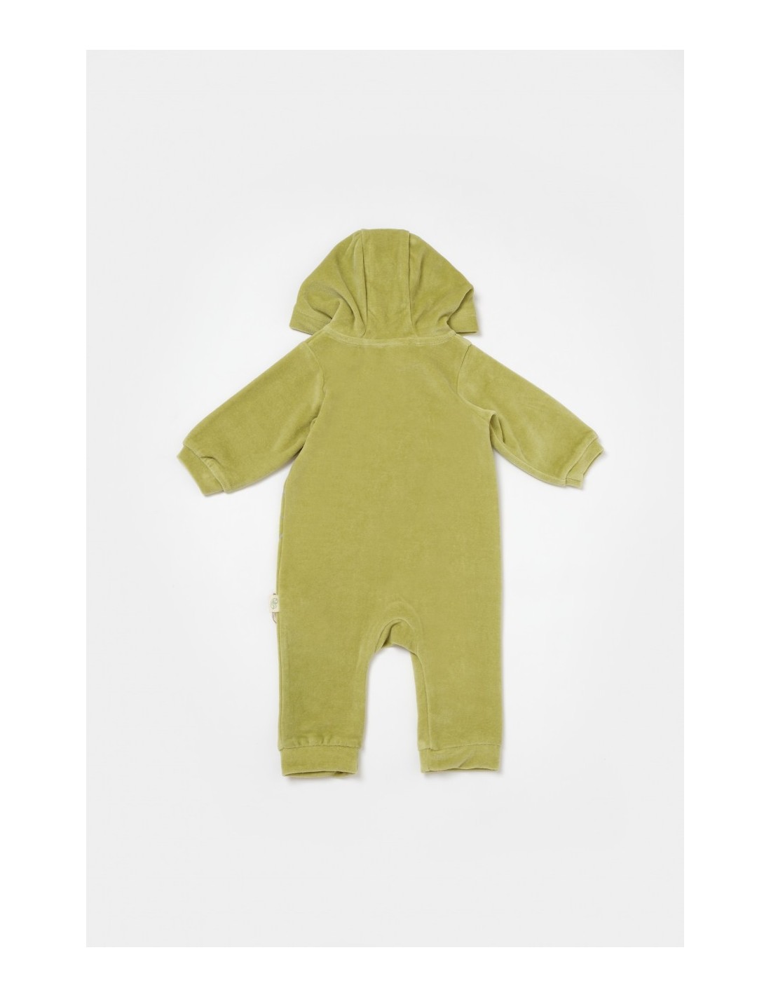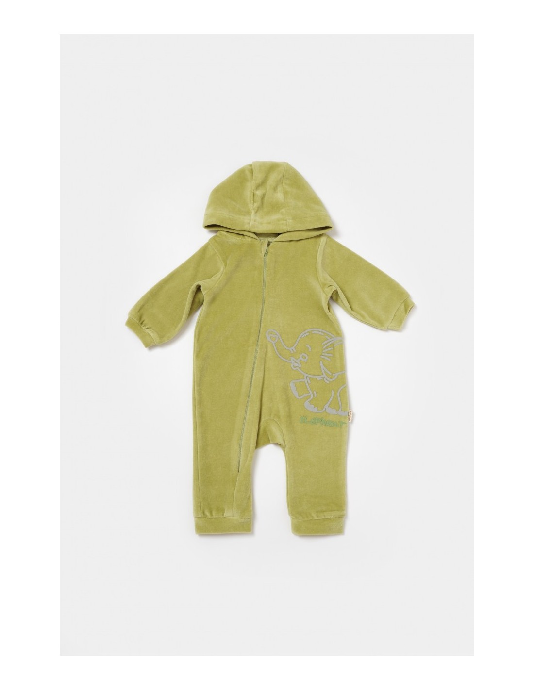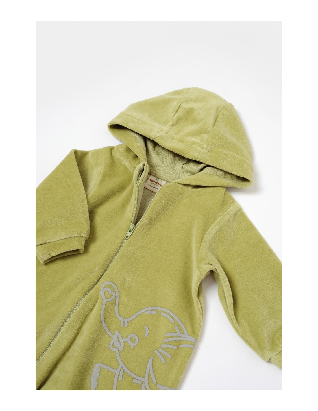 Salopeta Elefant cu maneca lunga si gluga din 80%bumbac organic si 20% poliester - Verde, BabyCosy (Marime: 12-18 Luni)