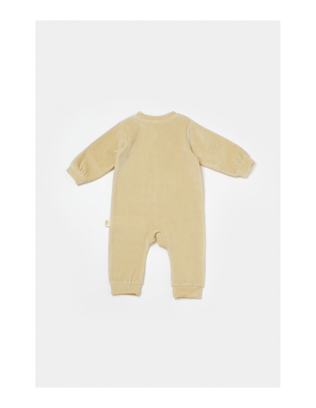 Salopeta Elefant cu maneca lunga din 80%bumbac organic si 20% poliester - Stone, BabyCosy (Marime: 6-9 luni)