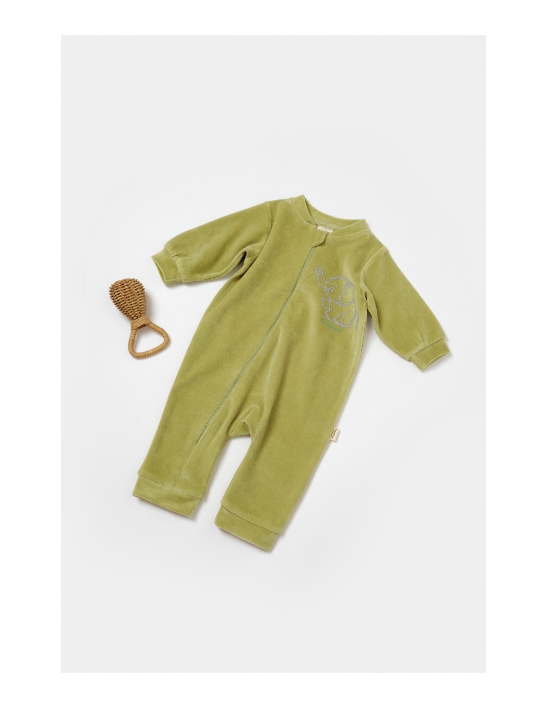 Salopeta Elefant cu maneca lunga din 80%bumbac organic si 20% poliester - Verde, BabyCosy (Marime: 9-12 luni)