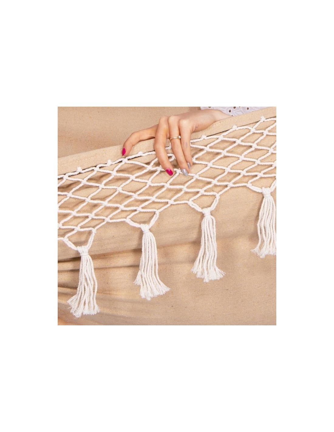 Hamac dublu, cu franjuri si 2 perne, crem, max 200 kg, 200x150 cm, Springos