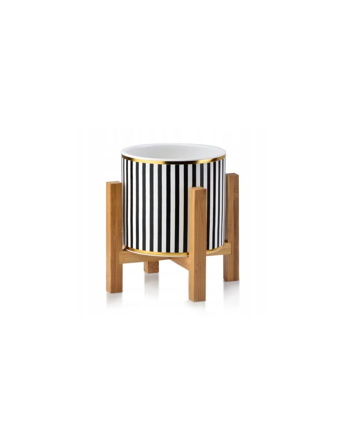 Ghiveci pentru flori Luxury cu suport din lemn, ? 12,5, Inaltime 16.5 cm, Alb / Negru / Auriu