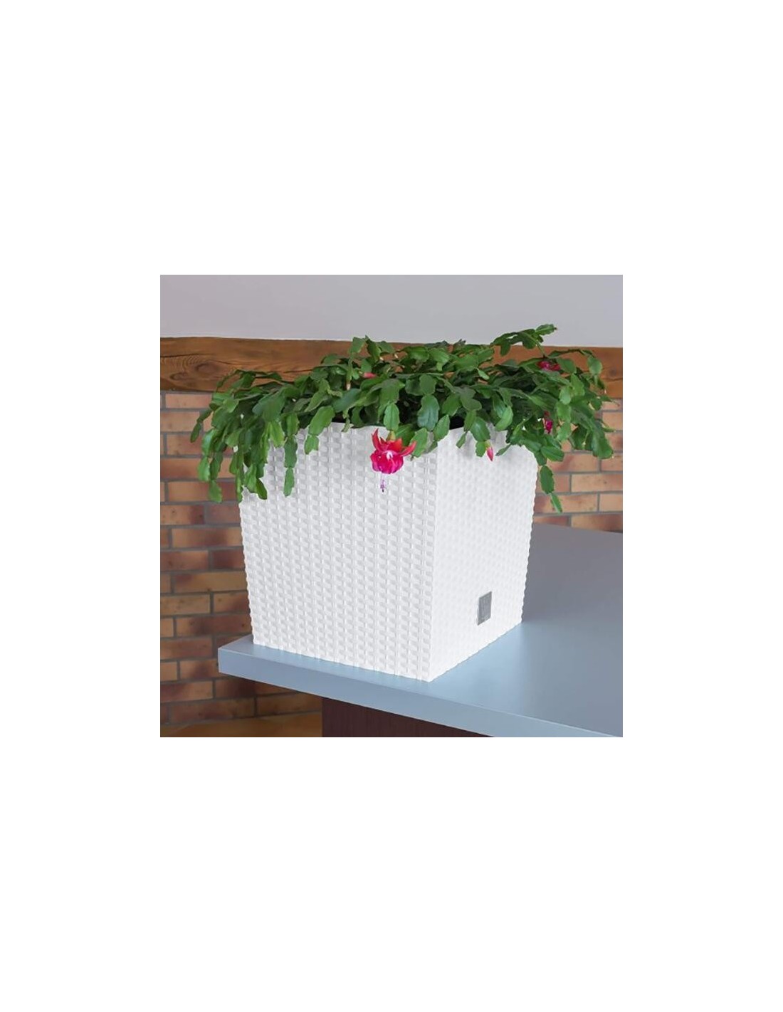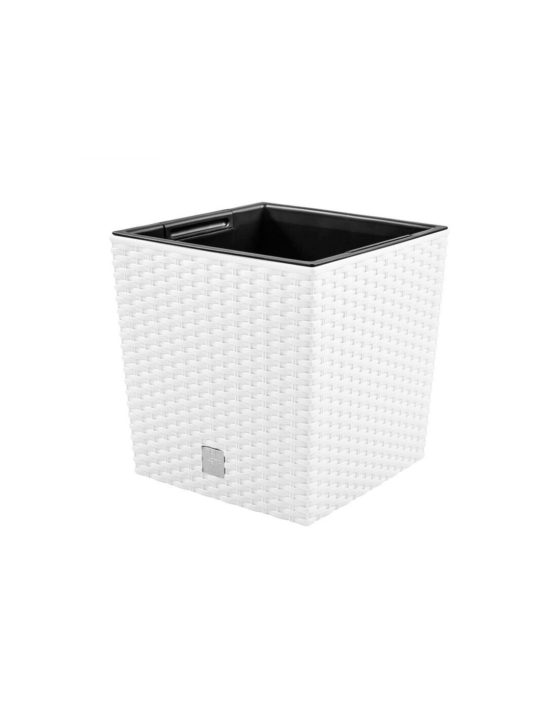 Ghiveci de flori, Prosperplast, Rato Low, patrat, 6.8 L, imitatie ratan, alb, 20x20x20.2 cm