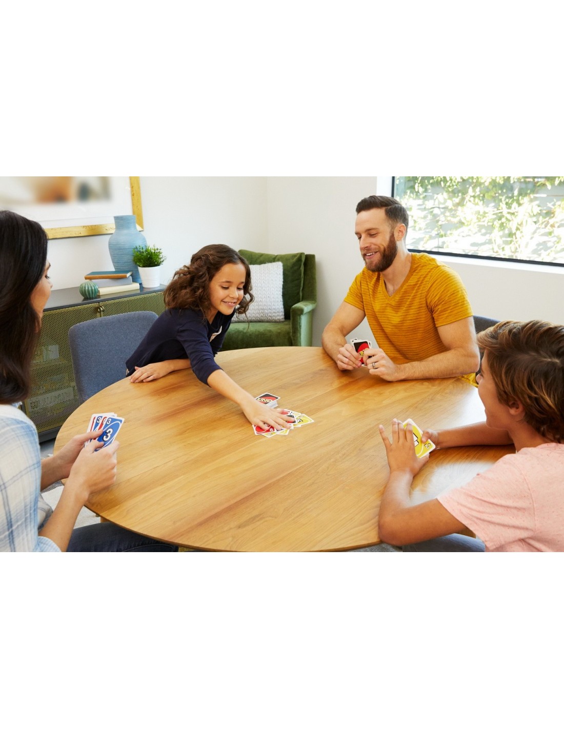 Toata lumea iubeste jocul Uno pentru ca este modalitatea perfecta de a strange familia si prietenii impreuna!Jucatorii se lupta sa castige si sa decarteze cele mai multe carti sau pot folosi chiar si carti speciale pentru a condimenta jocul! Nu uita sa strigi UNO cand mai ai o singura carte! Jucatorul care ramane fara carti castiga!Aceasta editie Uno vine impreuna cu pachetul de carti Uno, tabela de scor, creion si instructiuni.