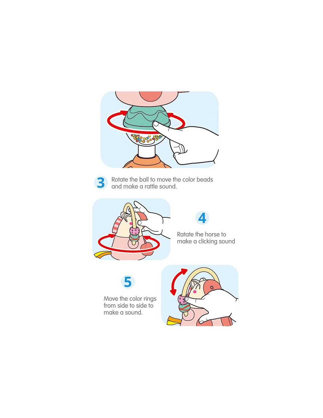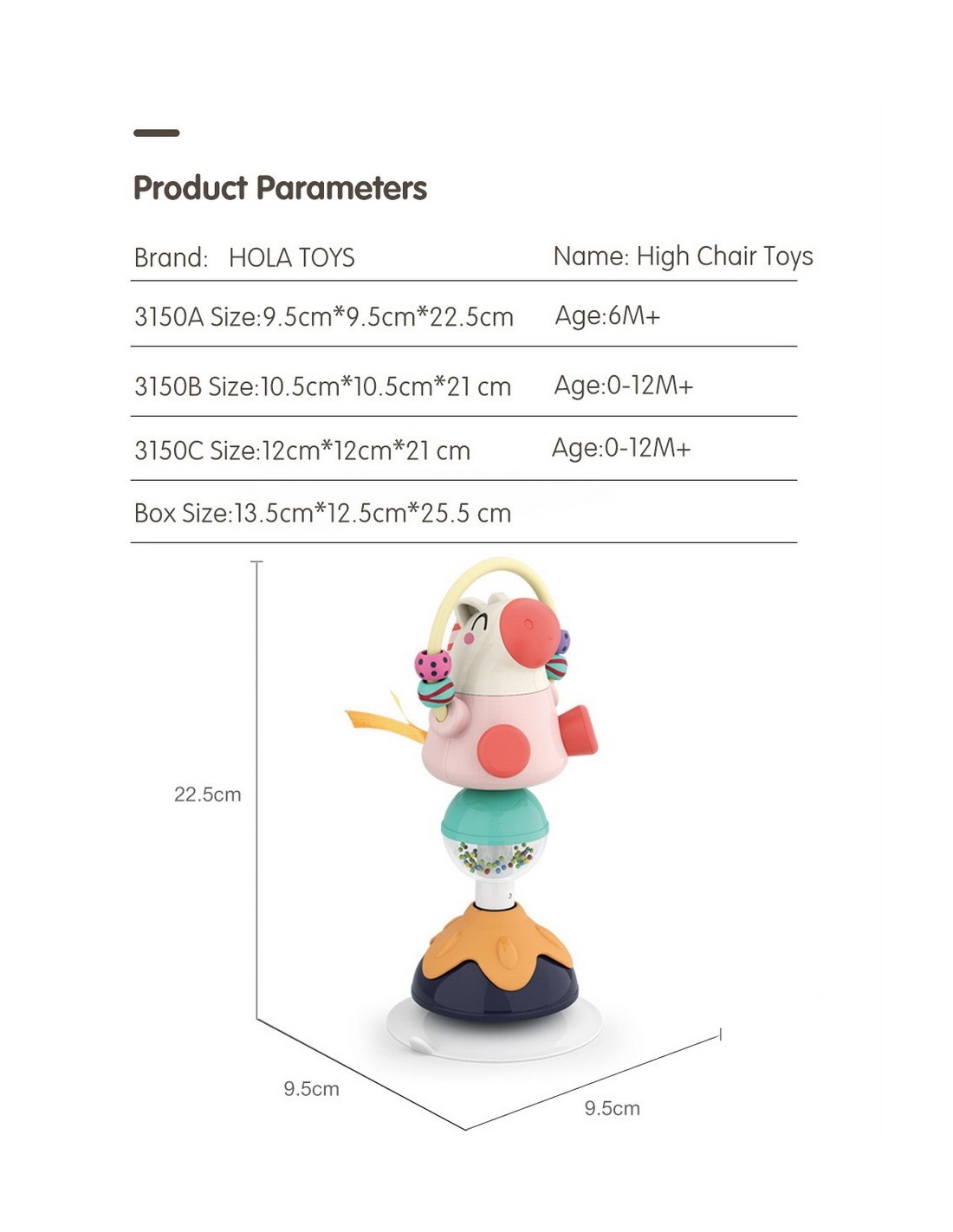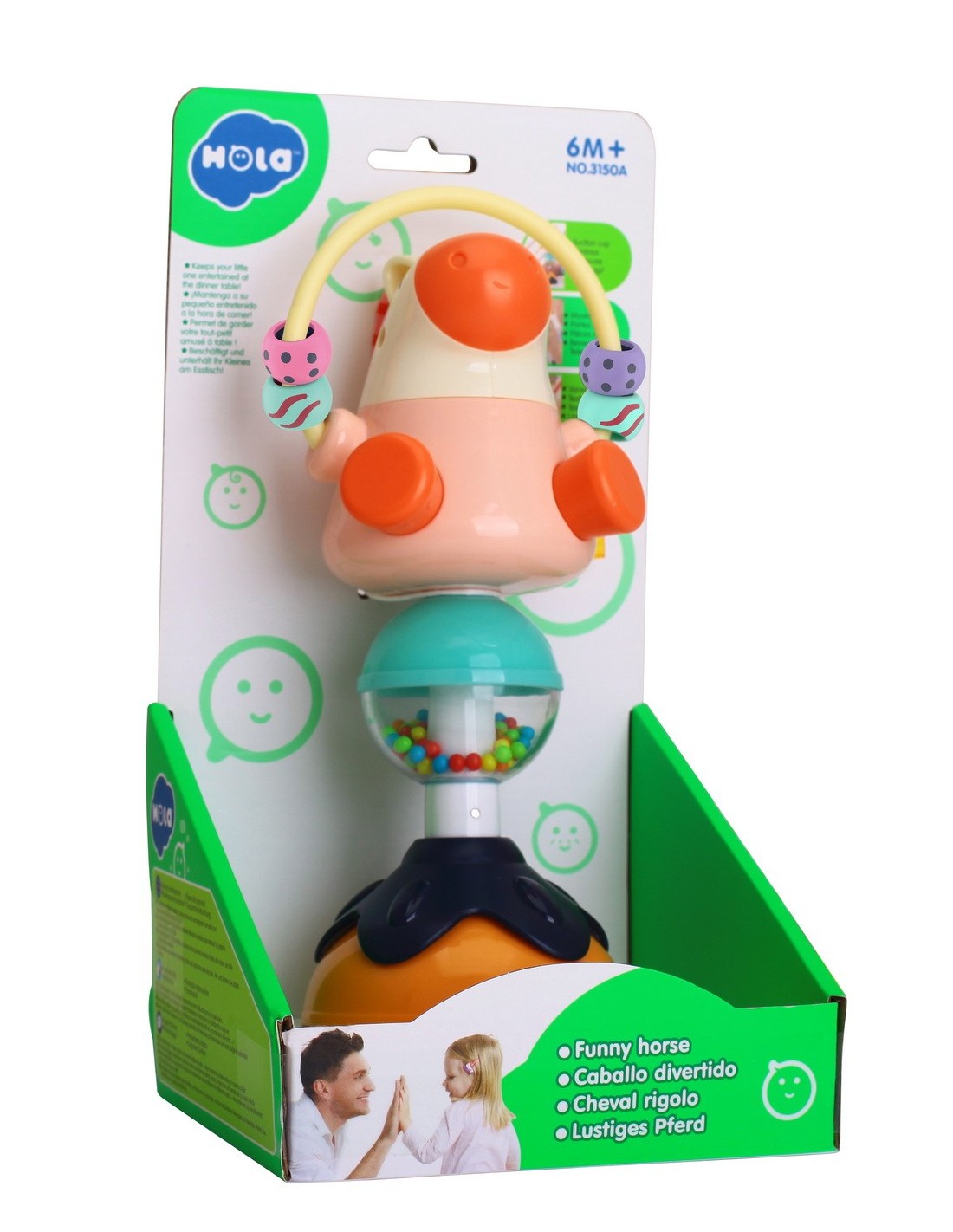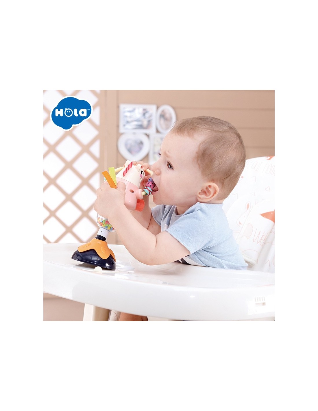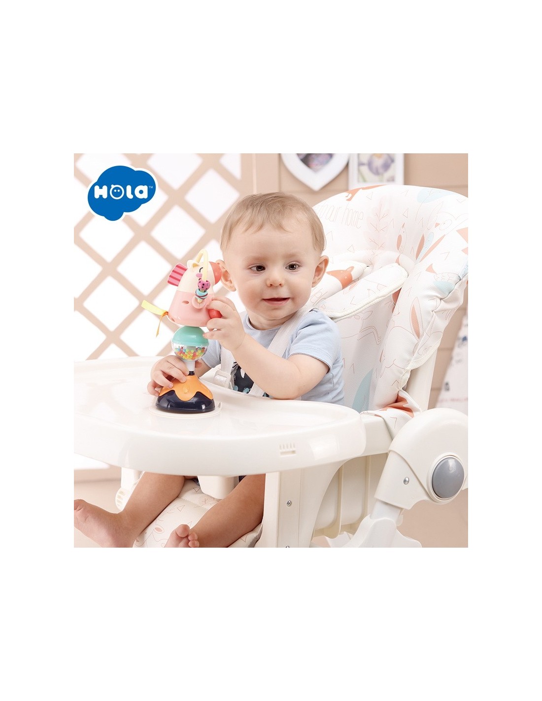 Jucaria Bebe Animalut cu ventuza are parti mobile, texturi variante, culori diferite pentru stimulare vizuala si un design versatil si atragator. Jucaria se poate monta masa copilului, pe scaunul lui de masa, pe parchet sau alte suprafete plane. Jucaria are 5 locuri, in care copilul poate efectua diferite activitatii precum rotirea, tragerea, apasarea, etc.