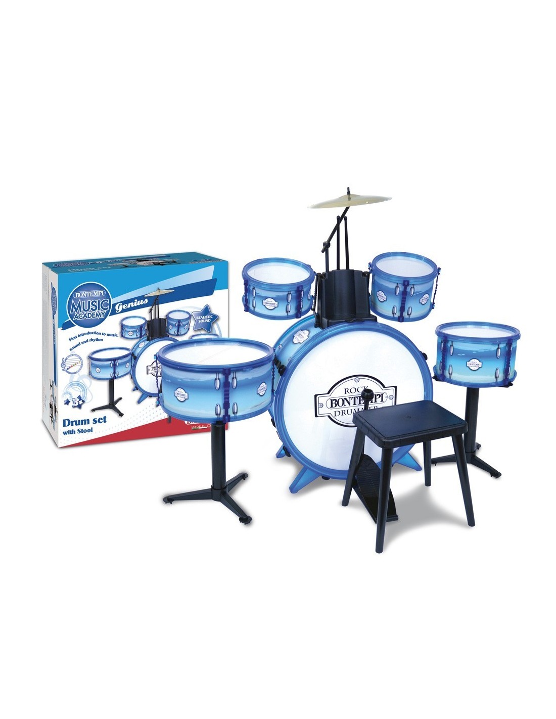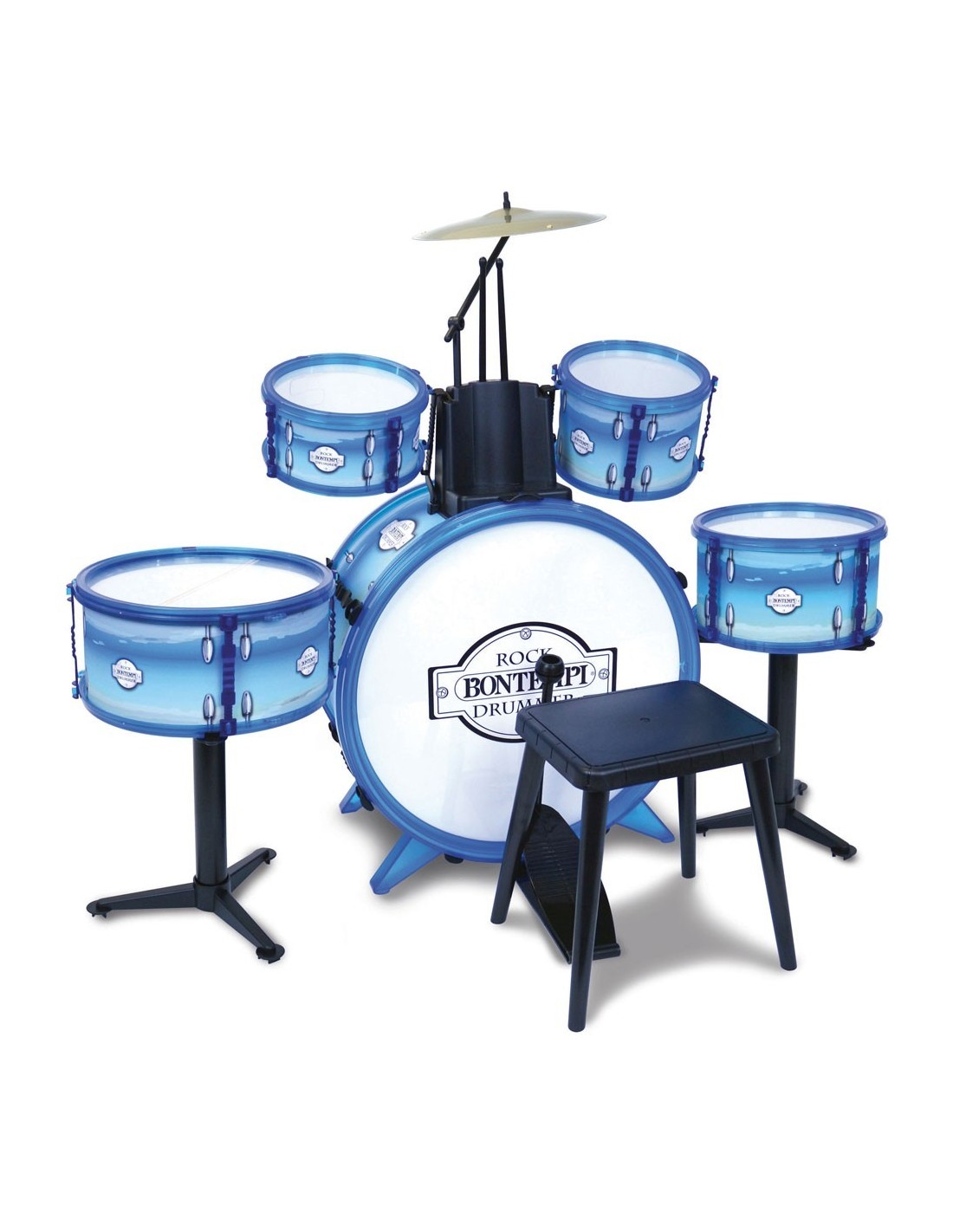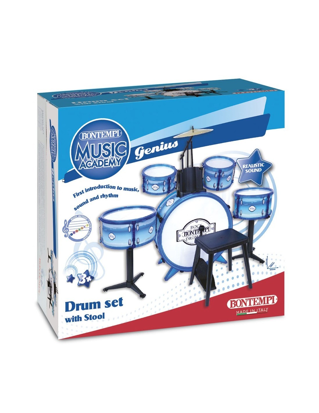 Set tobe Bontempi Rock Drummer, cu stativ.Setul de tobe pentru copii contine 1 toba bass cu diametru de 38.5 cm si pedala 2 tobe laterale cu diametru de 17 cm 2 tobe laterale de 21 cm pe stativ talger de 21 cm 2 bete pentru tobe si scaun de plastic.Jucaria este confectionata din materiale rezistente (plastic si elemente de metal) si are un design compact.Beneficii familiarizarea cu muzica si ritmul, dezvoltarea abilitatilor sociale si cognitive, coordonarea miscarilor, atentia distributiva.Dimensiuni jucarie 85 x 65 x 68 cm