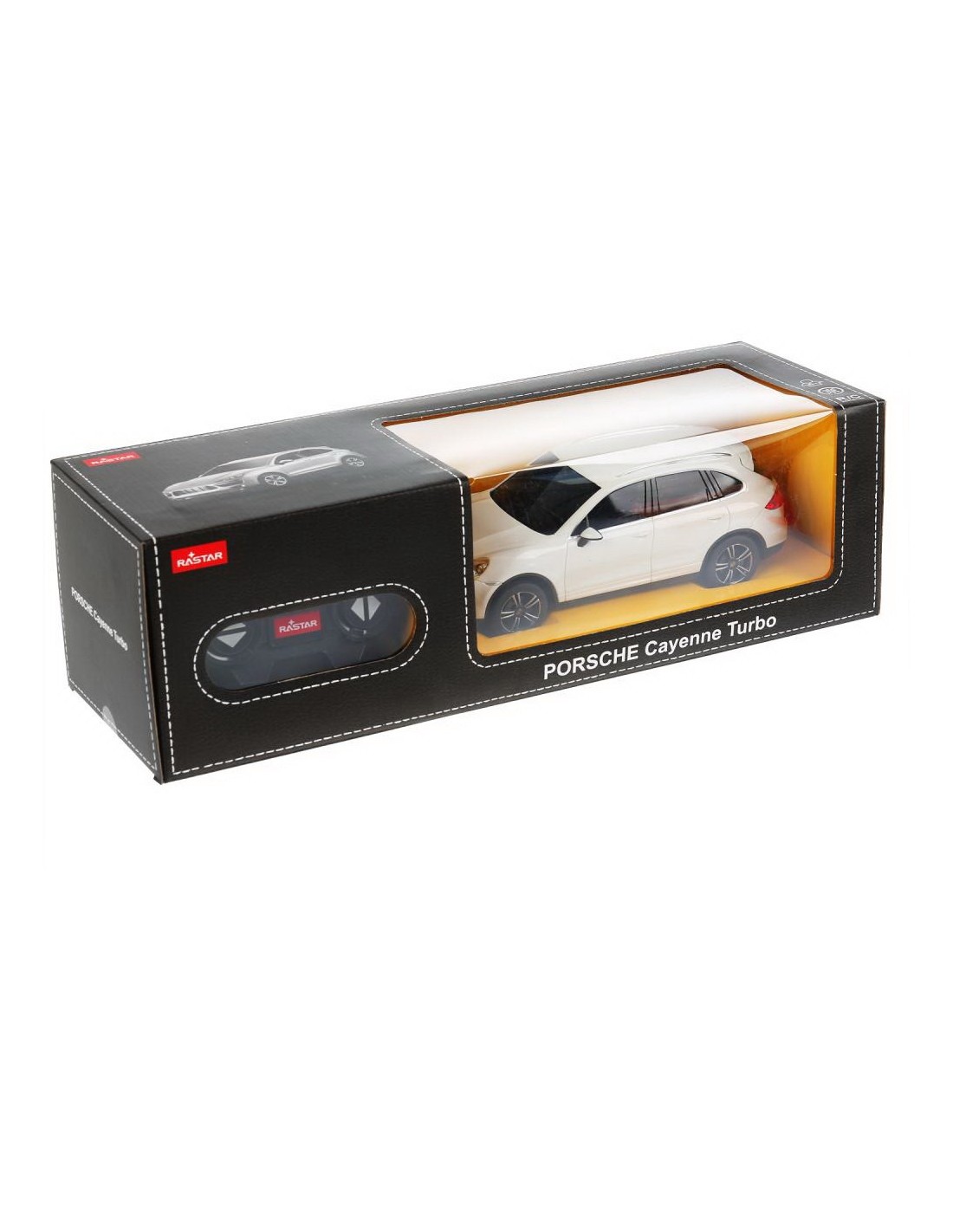 Copilul dumneavoastra se poate juca in voie cu masina cu telecomanda Porsche Cayenne Turbo, scara 1 la 24, oferita de brandul international Rastar. Nicio cursa nu este imposibil de castigat cu acesta masinuta, replica oficiala cu licenta a modelului original, construita cu mare atentie la detalii. Masinuta are proportiile ideale pentru momente pline de distractie si amuzament, avand dimensiunile in centimetri dupa cum urmeaza 20.2*8.1*7.1.Masinuta functioneaza pe frecventa de 2.4G.Alimentarea se face astfel pentru masinuta sunt necesare 3 baterii tip AA , iar pentru telecomanda 2 tip AA.Masinuta se poate deplasa in toate directiile inainte, inapoi, stanga sau dreapta. Masina cu telecomanda Porsche Cayenne Turbo, scara 1 la 24, poate rula cu o viteza aproximativa de 10km/h, are tractiune 2WD, anvelope de cauciuc, posibilitate de reglaj a directiei direct pe sasiu si o raza de actiune a telecomenzii de circa 20 de metri.