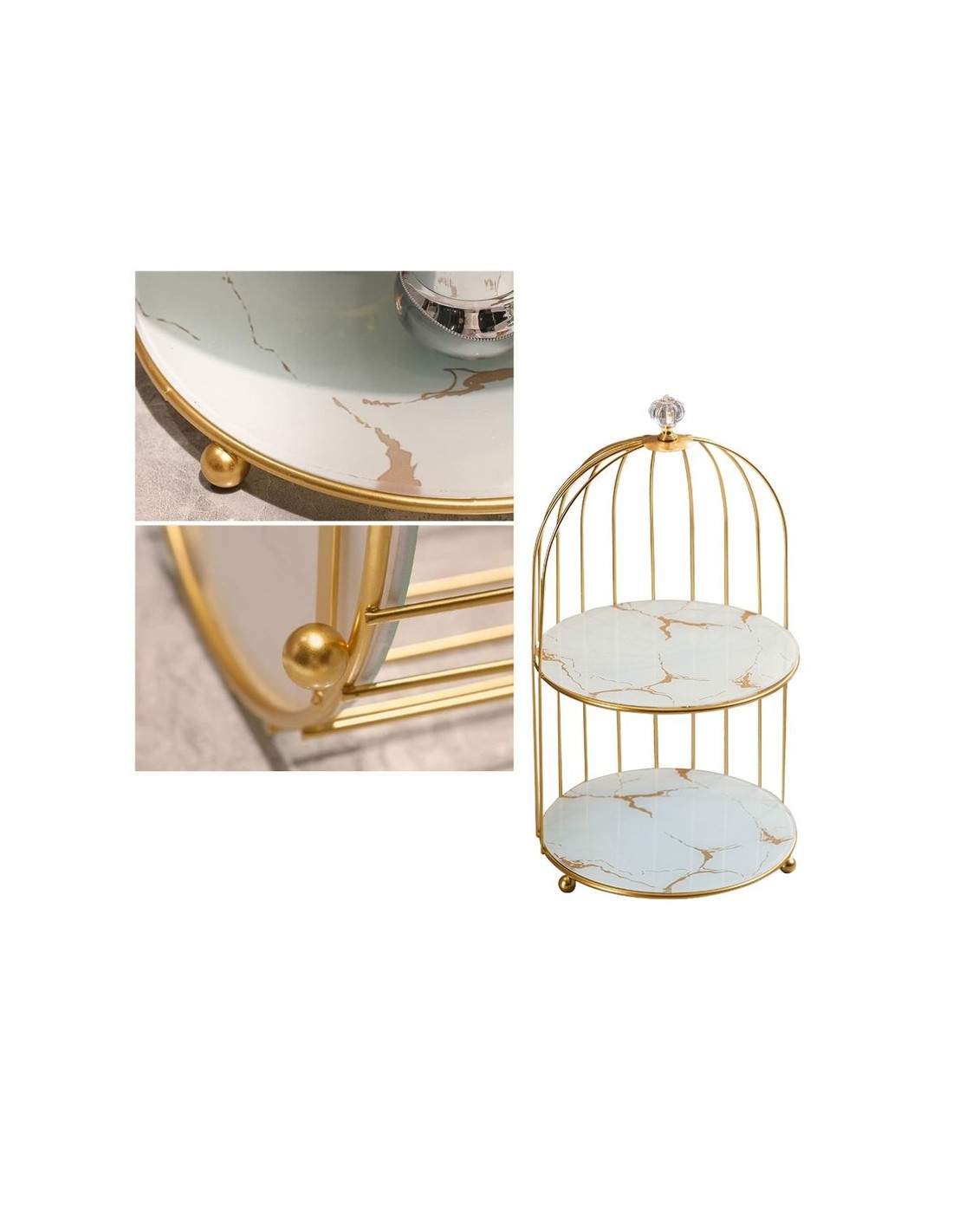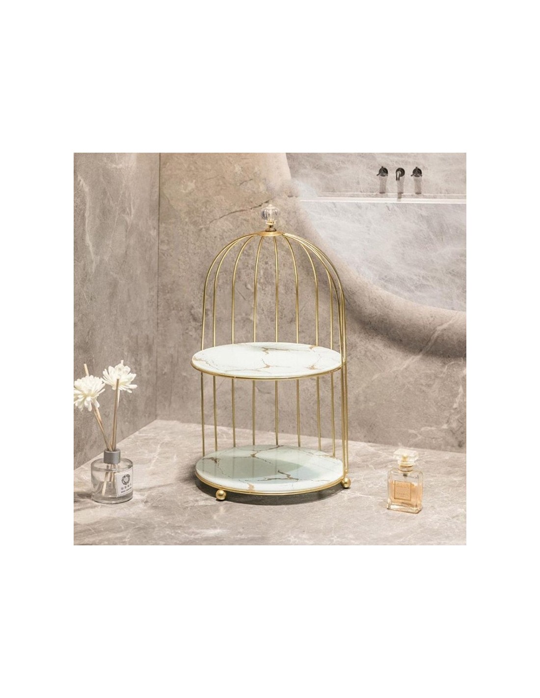 Organizator metalic pentru cosmetice LuXShape in forma de colivie cu 2 rafturi, 36 x 20 cm, Auriu / Alb