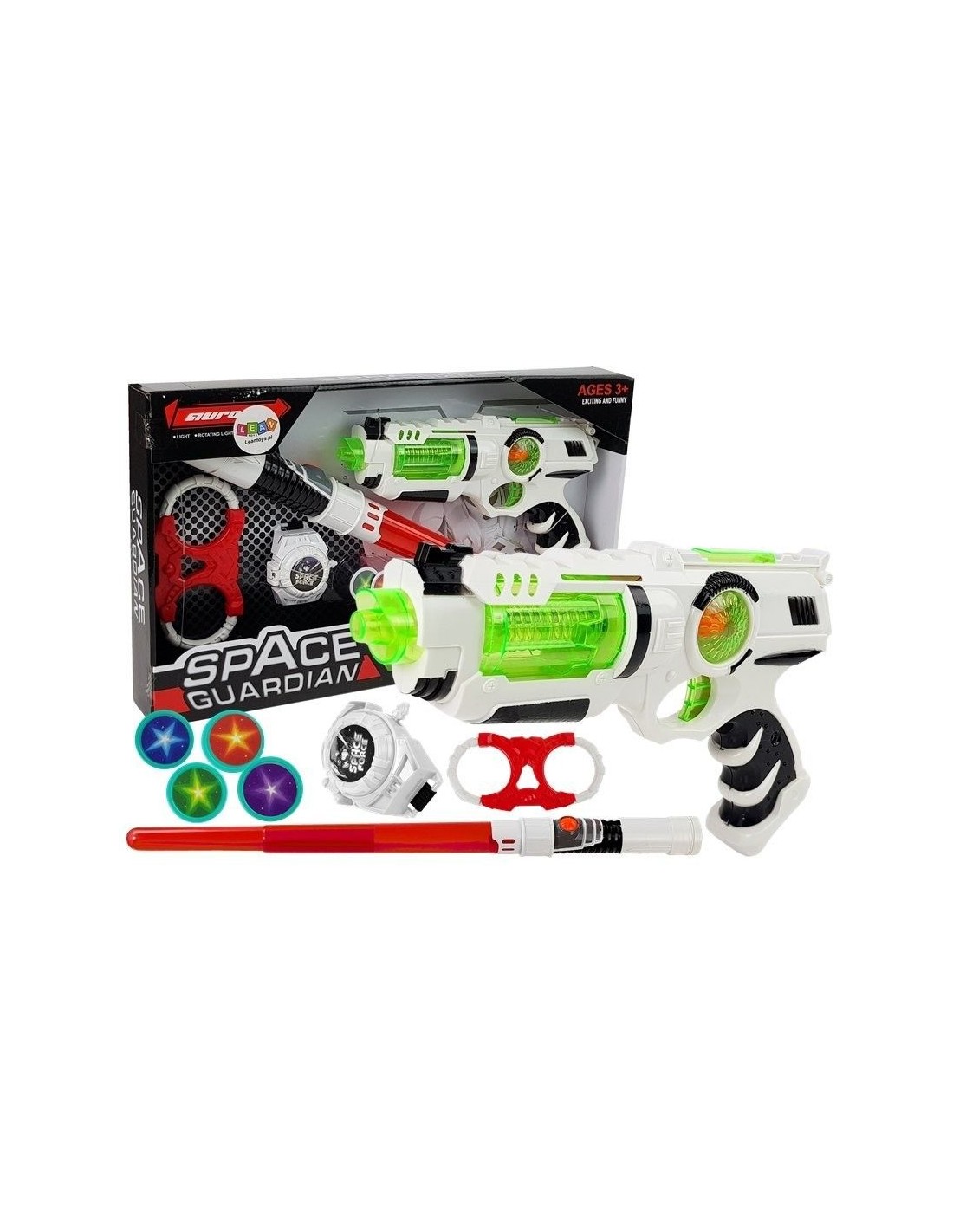 Set de joaca SF pentru copii, pistol laser, sabie laser si accesorii gardianul galaxiei, LeanToys, 7094