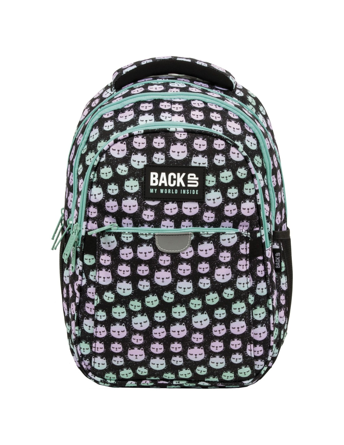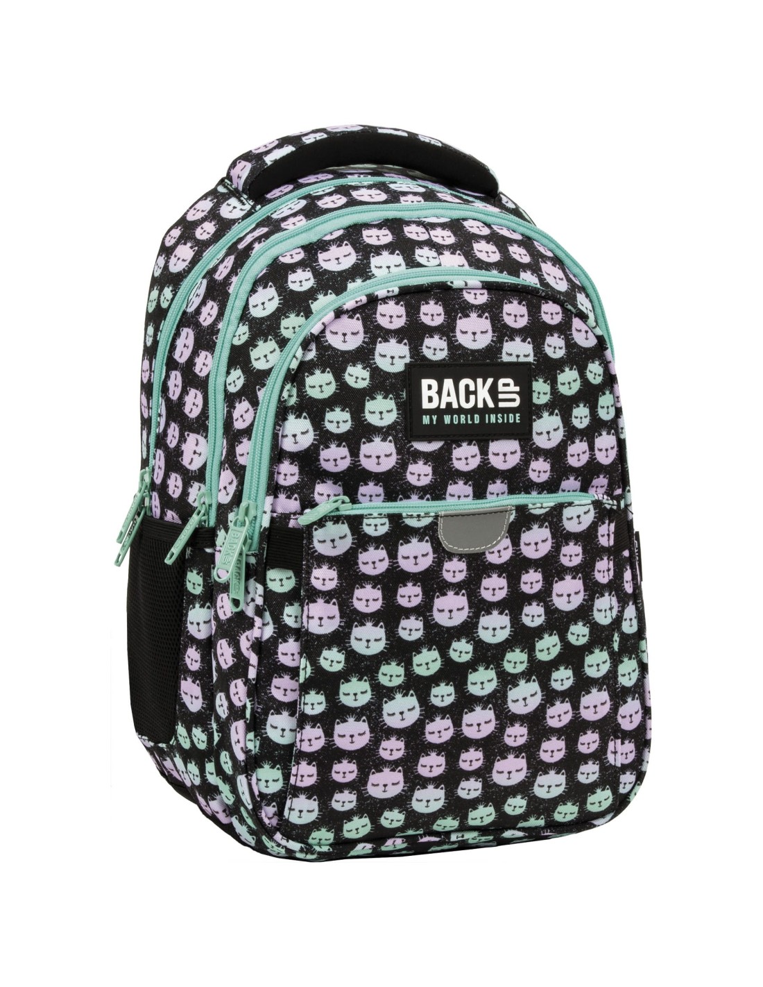 Daca regele animalelor este leul, regina este pisica? Coroana de pe capetele acestor animale fermecatoare cu culori pastelate care decoreaza rucsacul BackUP vorbeste de la sine! Culorile care se impletesc de roz, violet si turcoaz pe un fundal negru creeaza o compozitie extrem de fermecatoare si delicata. Datorita dimensiunilor adaptate la statura mica a copilului, este un rucsac creat special pentru micile printese!