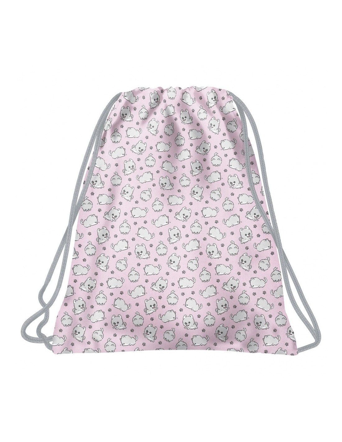 Roz pastel combinat cu detalii gri și câini fermecați, stângaci - poți visa la o geantă de pantofi mai bună pentru o fată? Câinii nestrăpâniți, albi, prezintă diverse trucuri care vor aduce zâmbetul pe chipul unui copil. Un astfel de prieten cu blană este o comoară.