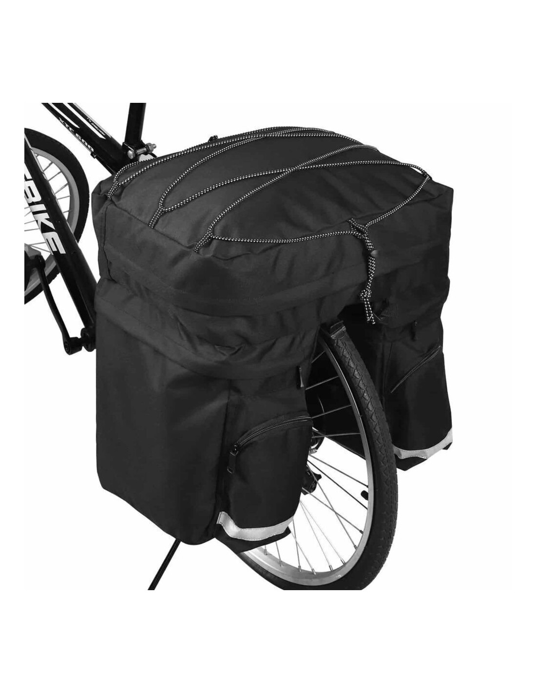 Geanta este conceputa pentru a fi ata?ata de un suport pentru biciclete.?Este ?inut pe loc elementelor de fixare puternice cu velcro care pot fi ata?ate cu u?urin?a la orice bicicleta.