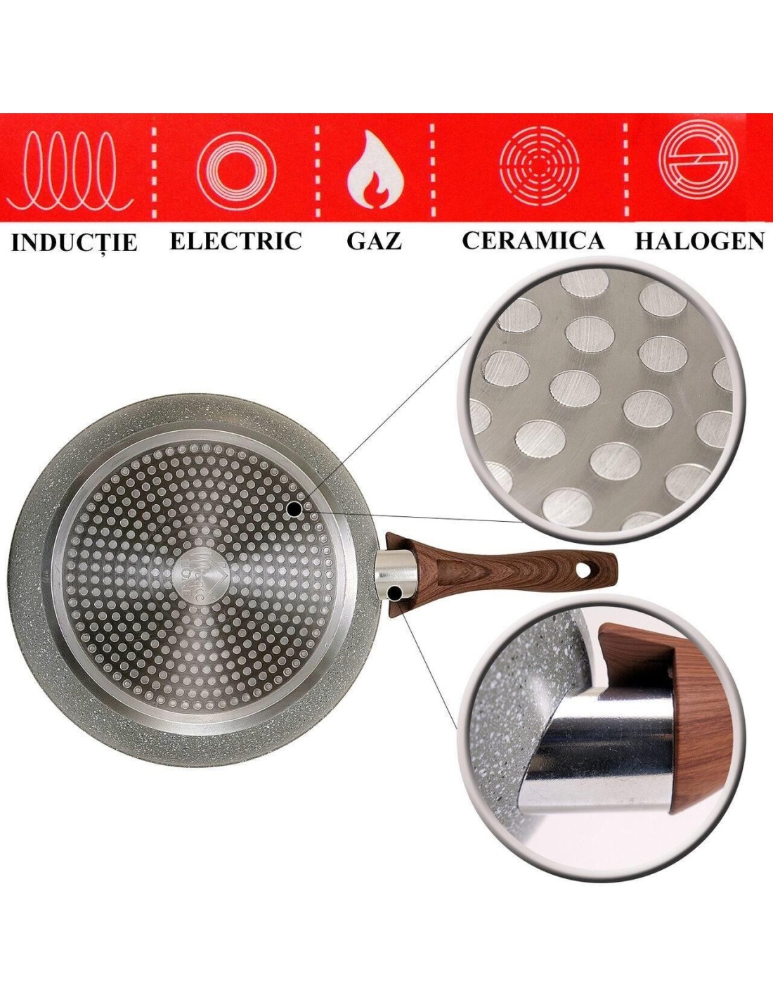 - Potrivita pentru?TOATE SURSELE?de incalzire ? inductie electrica, flacara gaz, ceramica, halogen.