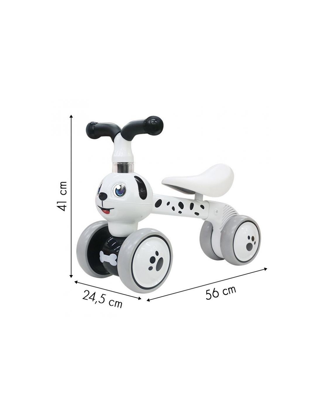 acest produs este ideal de oferit cadou micutilor tai copilasi! Tricicleta este in forma de animalut catel dalmatian negru-alb.